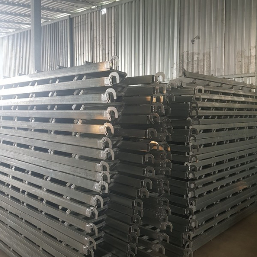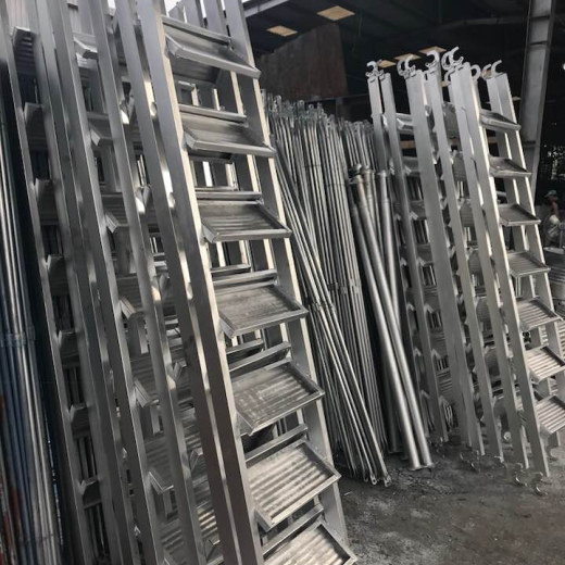 Cầu thang sử dụng cho dàn giáo 1.7m., quy cách: 2300 x 480mm, dùng có thép hộp 30 x 60mm, hoặc 40 x 80mm, thép mạ kẽm, có móc khóa an toàn.
